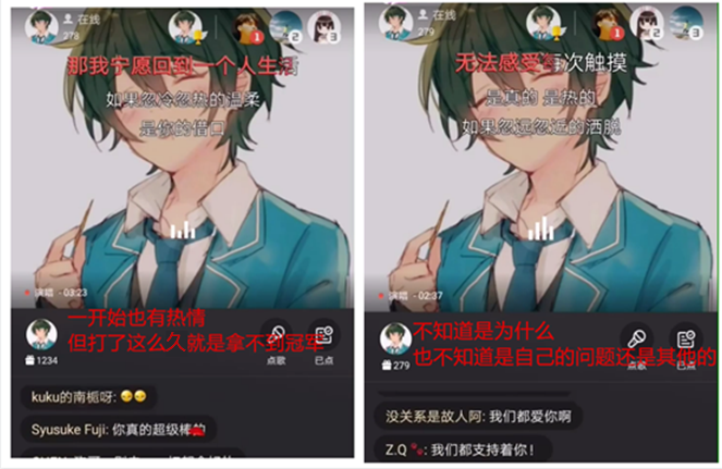 伪装在全民K歌开启的直播中,直言自己一开始也有热情,但打了这么就是拿不到冠军,不知道是为什么,也不知道是自己的问题还是其他的。