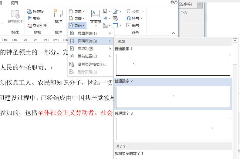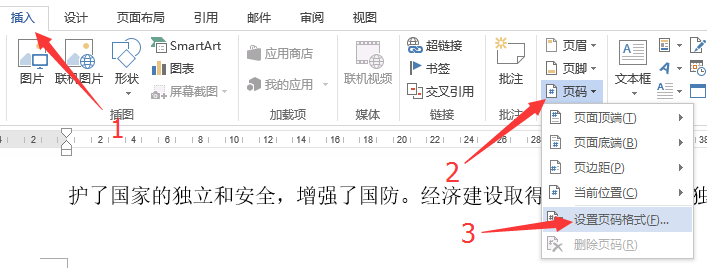 第三步:在插入选项卡中点击页码按钮,在弹出的菜单中点击设置页码格式按钮(图4),打开页码设置对话框。