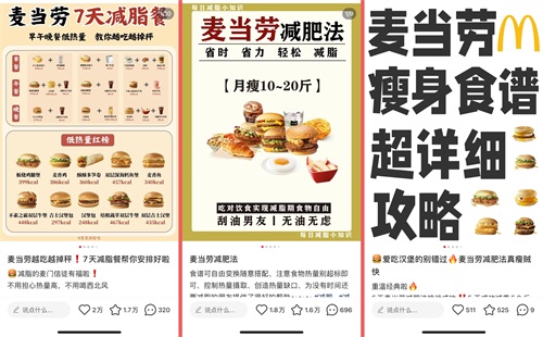 与此同时,在社交平台上,兴起一股“麦当劳减肥法”风潮。参与者声称,通过“精准控制热量”,吃快餐也能实现减重。网友晒出的“月瘦10斤”对比图、快餐店“减肥打卡攻略”等获数万点赞。评论区涌现大量“求食谱”“打卡跟练”留言。部分网友表示尝试后“体重下降明显”,但也有用户反馈“越吃越饿”“停用后反弹更快”。