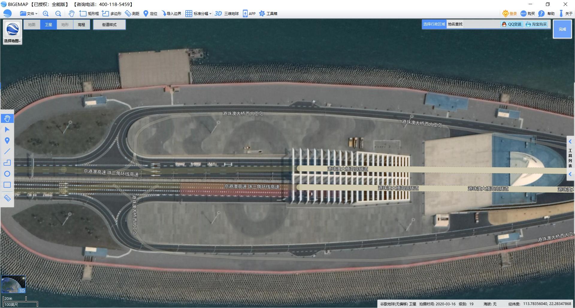 从BIGEMAP谷歌卫星地图上看港珠澳大桥收费站