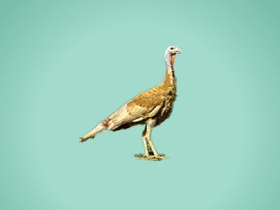 在颈下方嗉囊的前方有一小肉埠,长着一小撮灰黑色卷曲硬毛。兴奋时,全身羽毛竖立,尾羽扇形展开,额上肉瘤变色,并伸长变成扁长形,平时肉瘤柔软,垂盖于喙上,超过喙尖,常发出“咕噜”声,漫步行走,神态十足。成年母火鸡羽色与公火鸡相似,但略浅,皮瘤不发达,也不伸缩,颈部无肉瘤,身躯比公鸡小,常发“咯咯”声,清晰动听,性情温雅,甚为可爱。成年公鸡体重5.74公斤,母鸡平均体重为2.94公斤。