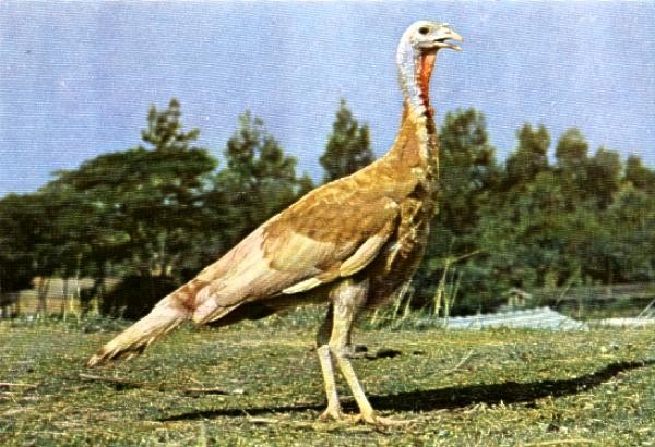 平均体重:初生47克;30日龄199克;60日龄383克;90日龄公火鸡681克,母火鸡653克;120日龄公火鸡1050克,母火鸡954克;180日龄公火鸡1562克,母火鸡1290克;成年公火鸡5740克,母火鸡2940克。60日龄料肉比2.0:1,120日龄料肉比2.8:1。120日龄公火鸡平均半净膛屠宰率83.77%,母火鸡84.07%,120日龄公火鸡平均全净膛屠宰率77.24%,母火鸡72.13%。