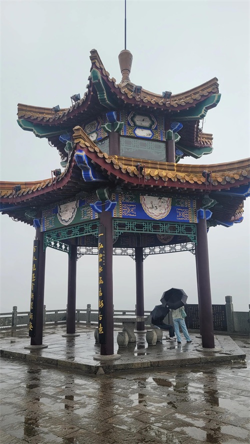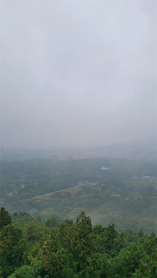尽管下着小雨,我看到一路上有不少游人登山。当我来到观景台的时候,看到好多人在拍照。