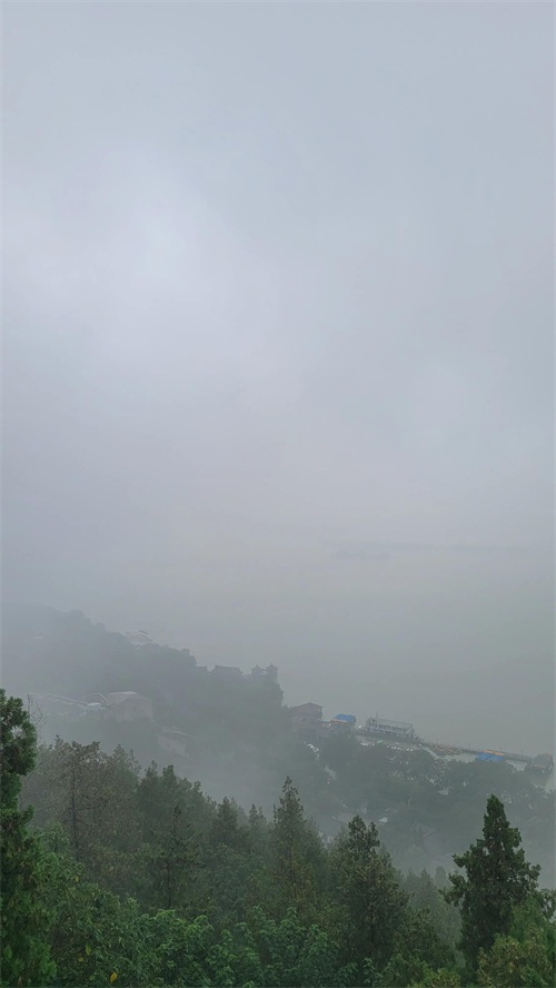 雨中的云龙山雾气腾腾,弥漫在远处山峦之间,远处的云龙湖若隐若现,犹如仙境一般,看起来非常漂亮。