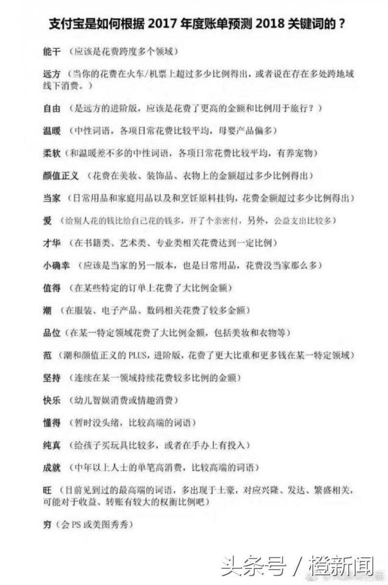 支付宝回答传媒称,关键词主要是根据过往消费资料与特征,给到的新年祝福。预测结果供各位亲参考,希望大家在新的一年都能收获更多。