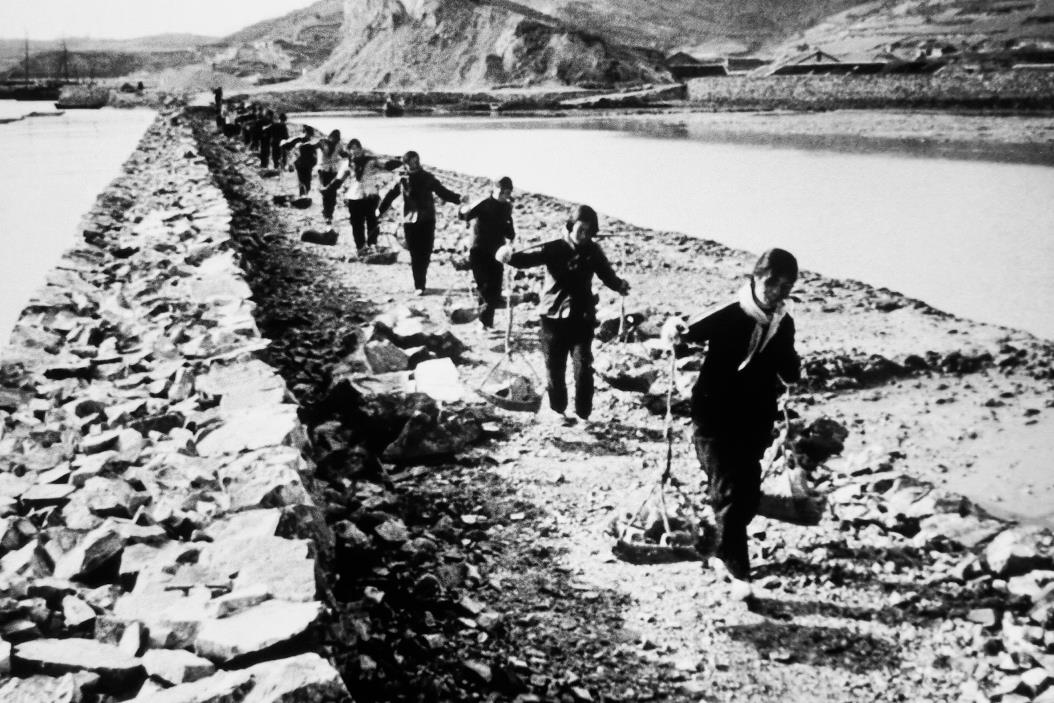 1973年,蚂蚁岛妇女建设“三八”海塘时的场景