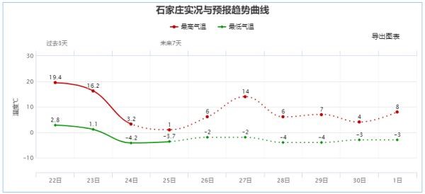 今天傍晚到夜间,张家口、承德晴转多云,其他地区多云转晴。最低气温,张家口、承德、保定西北部-16~-8℃,其他地区-7~-1℃。