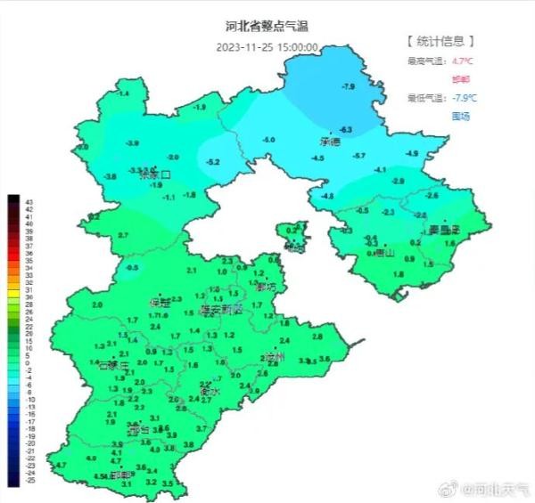 天气现象最高气温最低气温风力 石家庄多云转晴6-2南风微风 张家口阴1-10东南风微风 承德阴3-8东南风微风 唐山多云转晴6-5南风微风 秦皇岛多云6-4东南风3-5级 廊坊多云6-4南风微风 保定多云转晴6-6东北风微风 沧州晴8-5西南风微风 衡水晴8-2南风微风 邢台晴80南风微风 邯郸多云转晴10-1南风微风 雄安新区多云转晴6-5西南风微风 定州多云转晴6-4北风微风 辛集多云转晴6-2南风微风 北京多云转阴4-5南风微风 天津多云6-1东南风微风