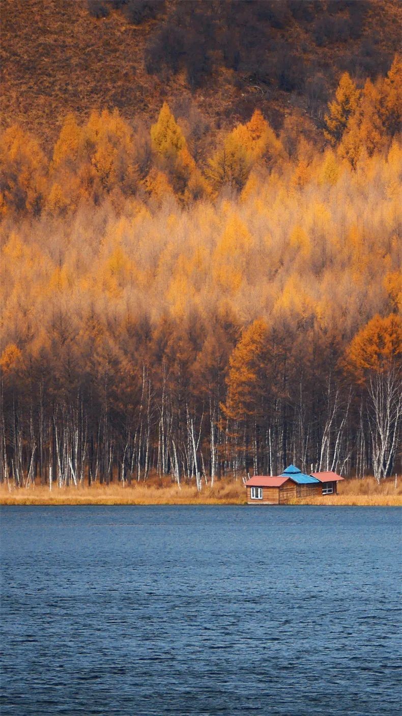 明净苍穹下落叶松,那灿烂无边的金黄,