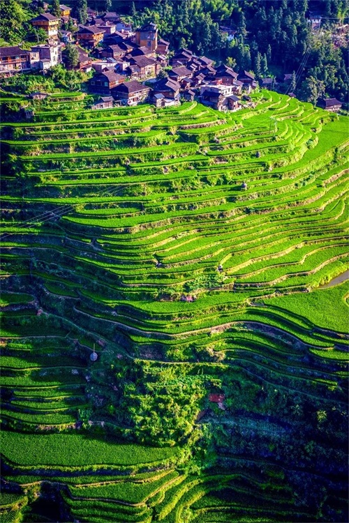 从山脚到山顶,一路梯田,