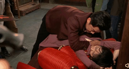 这场戏本应是男方将秦岚揽入怀中,营造出一个看似占便宜的虚假场景。