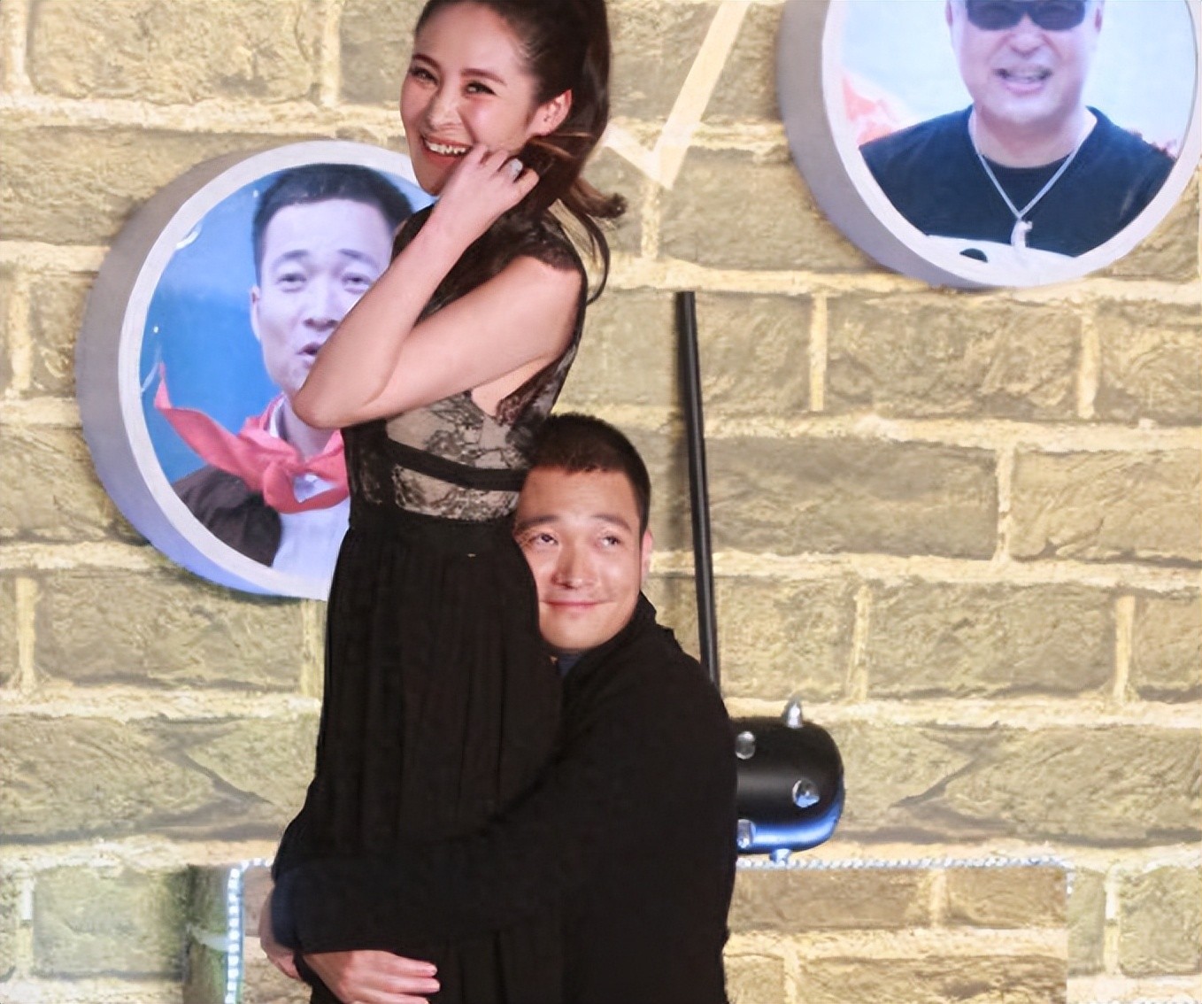 他不仅把头靠在女方的肩膀上,更是跪在女方的身后,将头靠在女方的臀部。他的双手紧紧地抱着女方的大腿,这种种的举动,看似为新戏宣传,实际上却像是在骚扰女方。