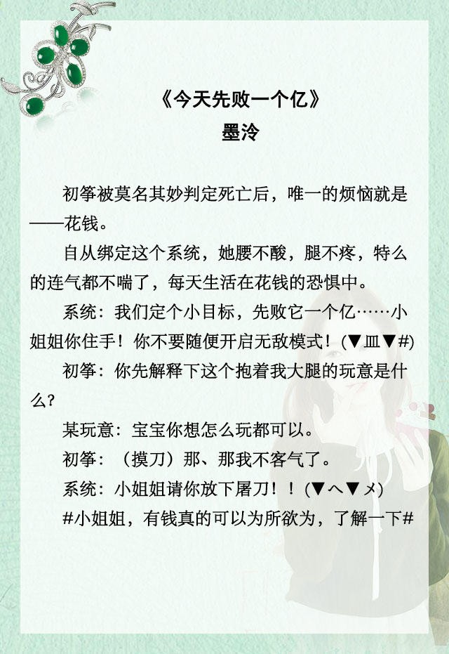 「推文」五本败家系统文,天降横财一百亿,女主花钱花到手软