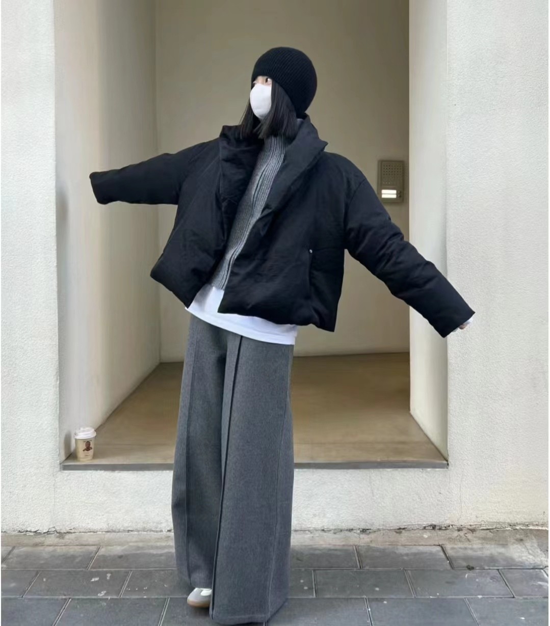 第二种搭配方法:黑色羽绒服+阔腿裤