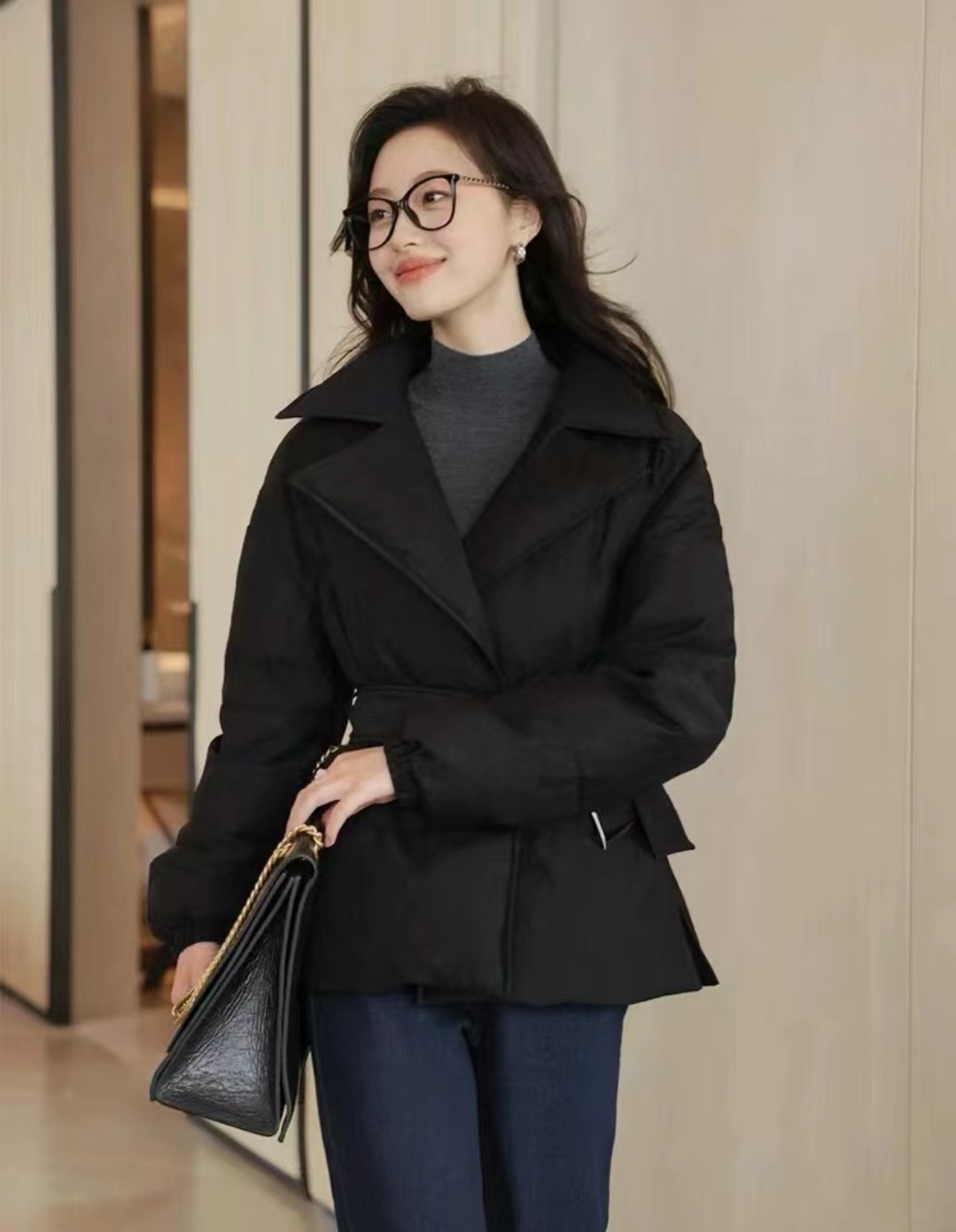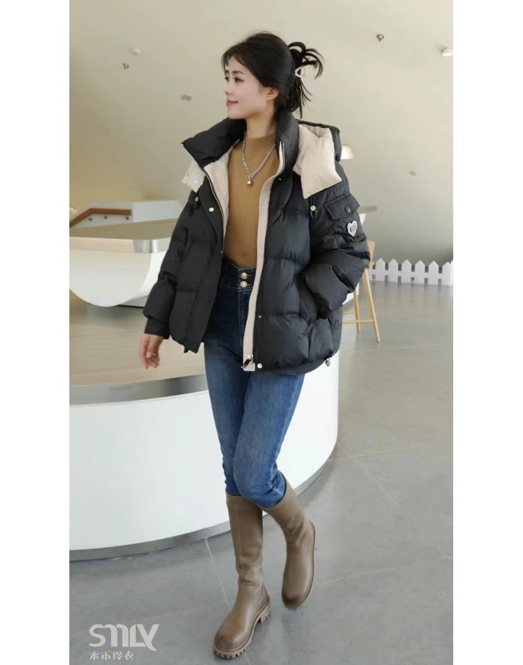 第六种搭配方法:黑色羽绒服/衬衫+高腰裤