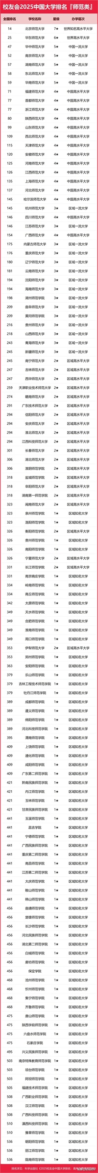 从《校友会2025年中国师范类大学排行榜》来看,北京师范大学排名全国高校第14位,排名全国师范类院校第一位。华东师范大学排名全国高校第25位,排名全国师范类院校第二位。华中师范大学排名全国高校第47位,排名全国师范类院校第三位。