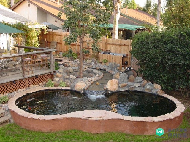 从风水上讲,水代表财,庭院里面建一处水景,预示着业主以后的财富会越来越好。如果显水景过于单调不够活泼,那么就在院子中建一处鱼池,清澈的水可以看到鱼儿在里面跳动弄,同时听着缓缓的水流声,也可以让业主辛苦一天紧绷的神经得到放松。鱼池可以为院子整体带来一些灵性,庭院鱼池样式多种多样,接下来,我们一起欣赏下面这些实景照片案例吧。