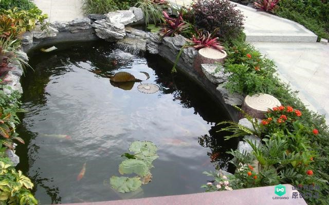 大鱼池周围只有种植的植物和景观石看起来会有些单调,可以在鱼池里面养一些植物。例如伞草、荷花、水葱、再力花、千屈菜、菖蒲、花叶芦竹等。