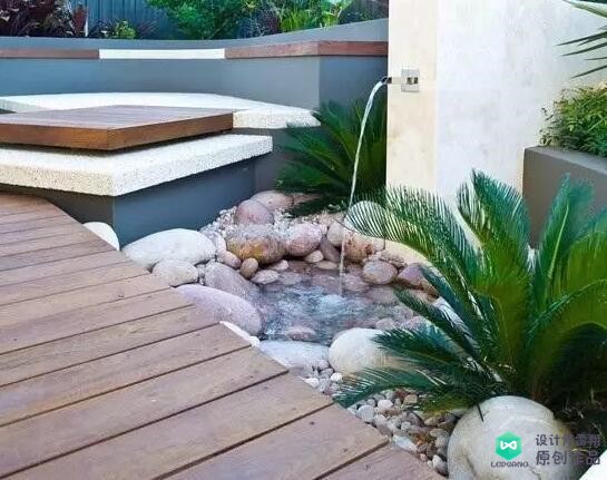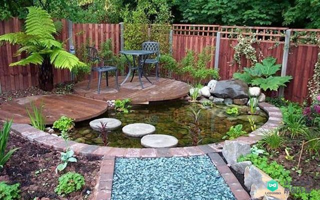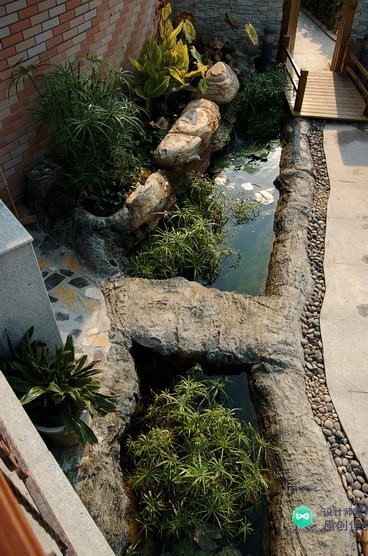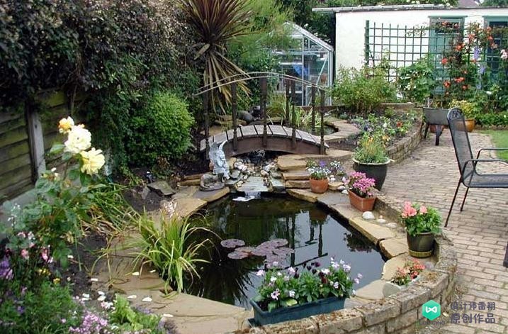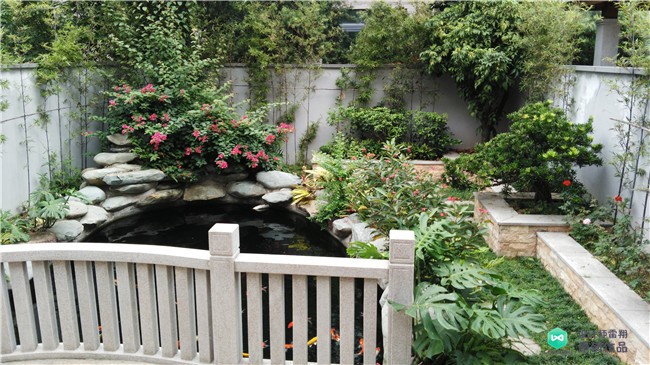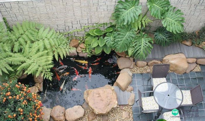 如果家里的院子比较小,可以选择在边缘一角建一个小鱼池,周围用景观石和植物装饰。