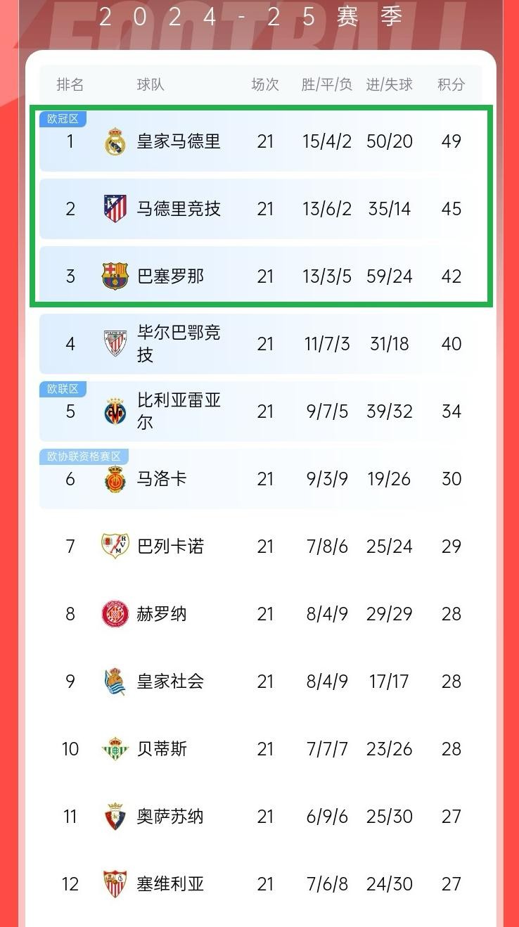 降级区则是瓦伦西亚、西班牙人和巴拉多利德,尤其是曾经的西甲冠军、西甲传统强队瓦伦西亚本赛季一直深陷降级区,令人意外。