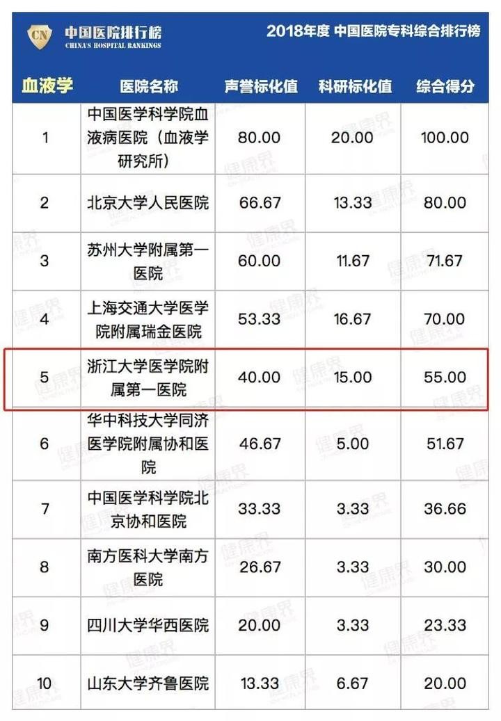 (原题为《持续进步!2018年度中国医院排行榜浙大一院综合排名全国第14,华东第3,浙江第一,6大专科进入前10,12大专科获专科声誉提名》。编辑张钟文)