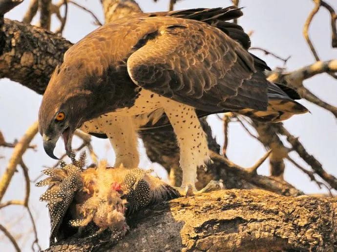 综上所述,猛雕是非洲非常凶猛的一种猛禽,它们通常都会从高处或者空中俯冲下来捕捉猎物,有时候也会抢夺其他食肉动物的猎物,而这些动物也知道猛雕的厉害,基本上都不敢与猛雕正面对抗,然后就快速逃离了。