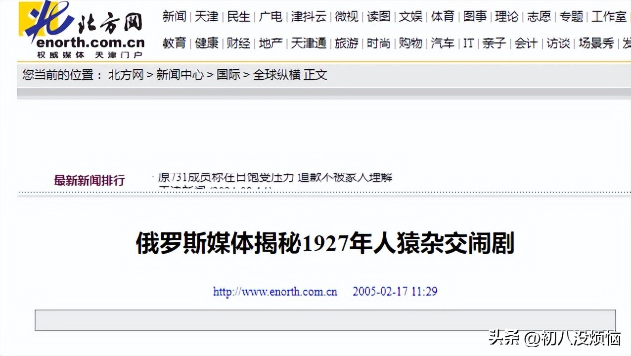 俄罗斯媒体揭秘1927年人猿杂交闹剧--北方网2005-02-17 11:29