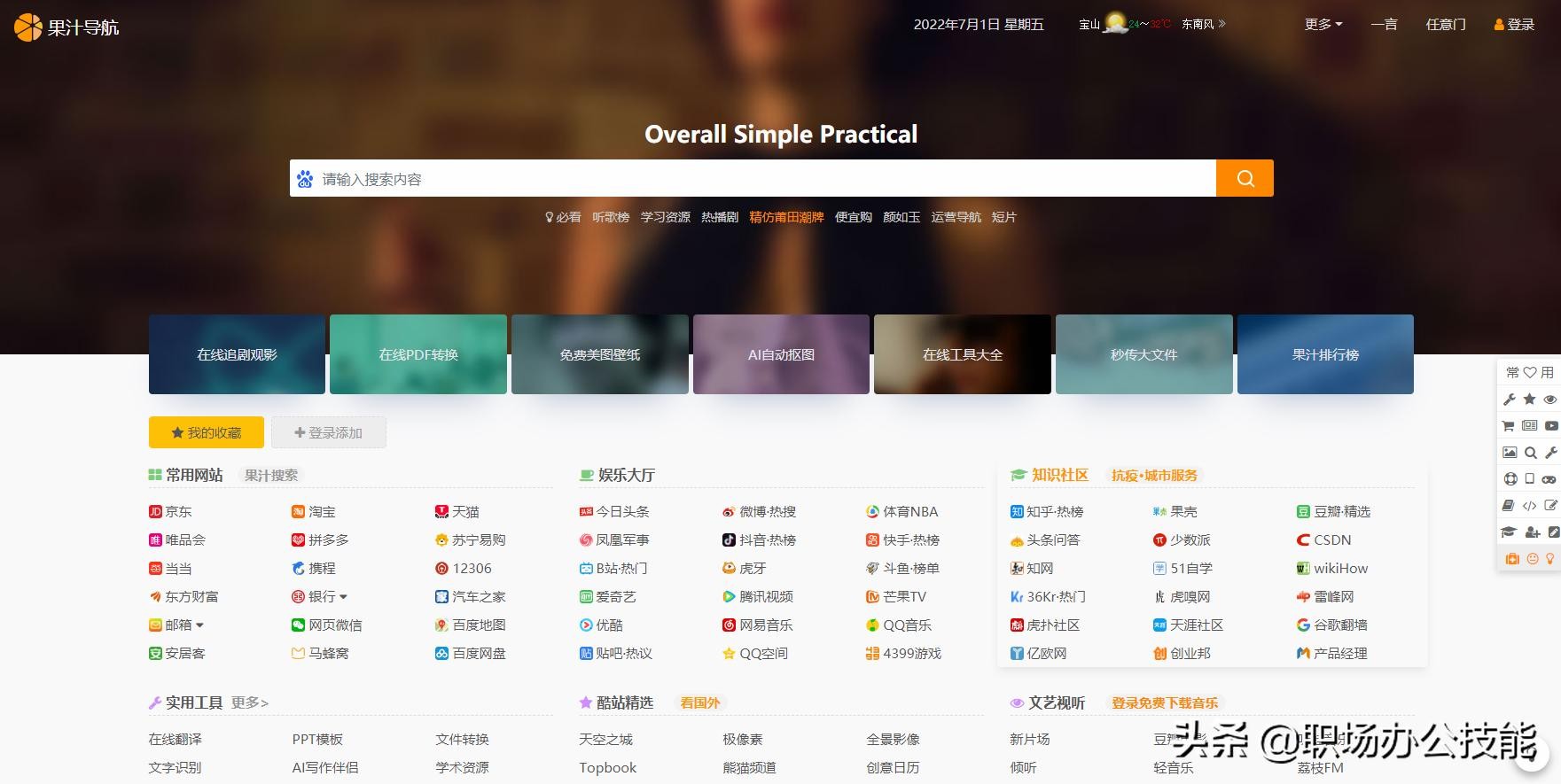 看到名字我以为是水果网站,其实果汁导航是一个简约实用的网址导航,干净无广告。除此之外免费在线工具、在线追剧观影里面,都聚合了大量的网站,内容非常丰富哦。