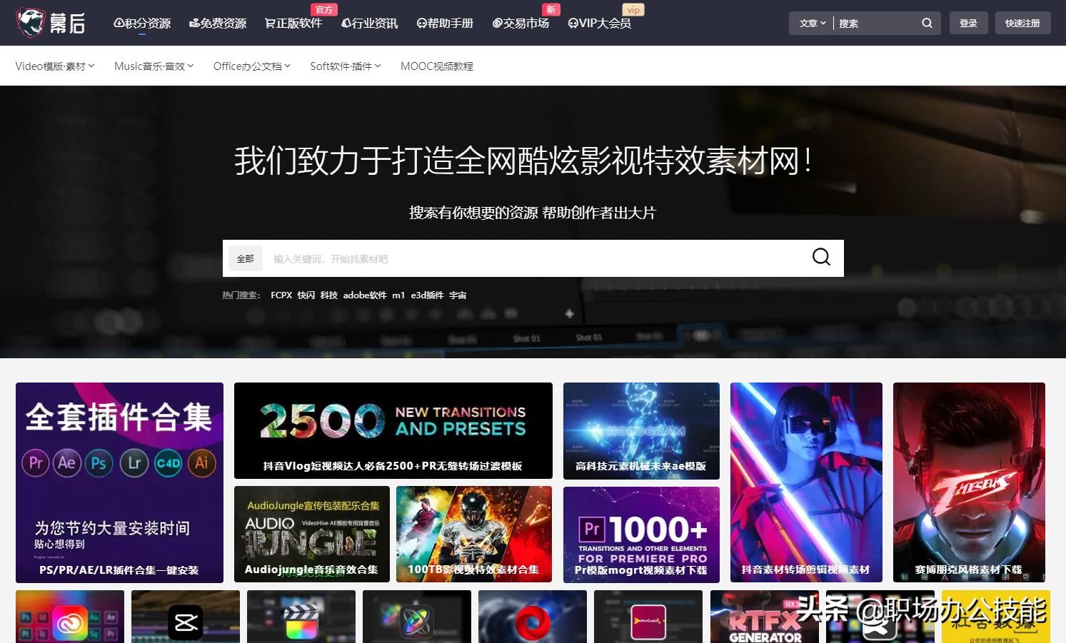 这是国内为数不多的免费资源网站,视频资源大多来源于国外免版权视频,资源涵盖了各种视频特效素材,以及AE和PR 模板,还包括一些制作工具和插件,通通都提供免费下载。