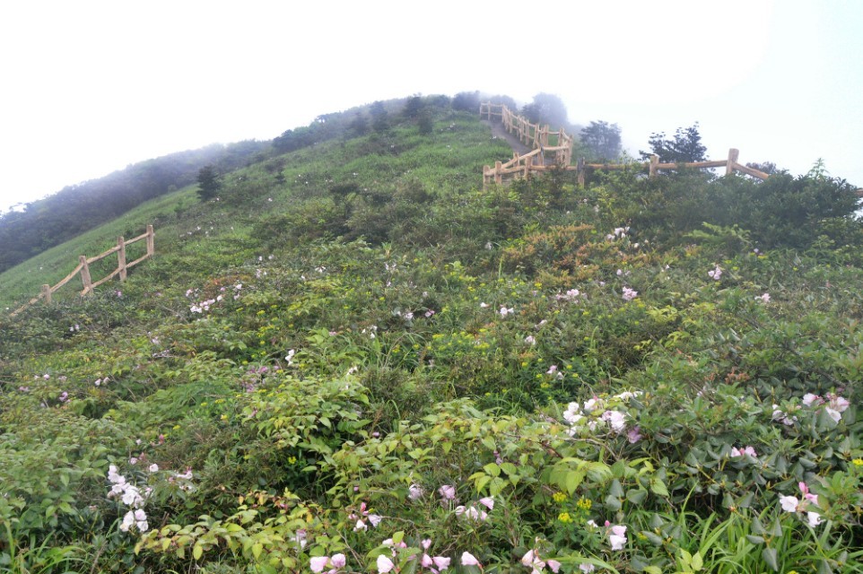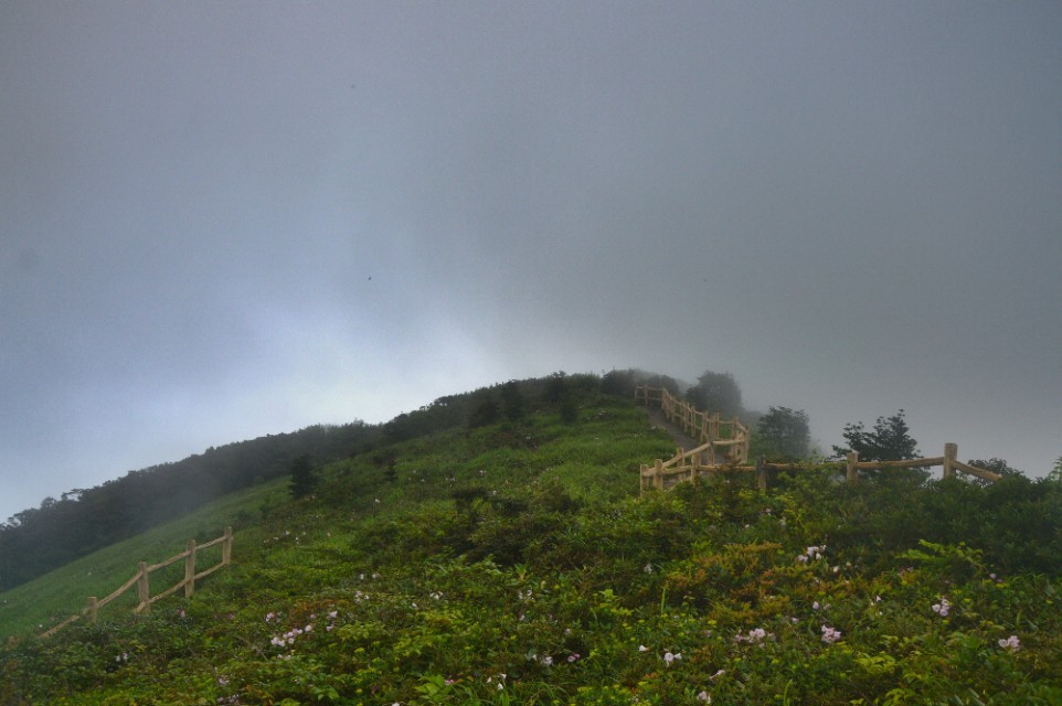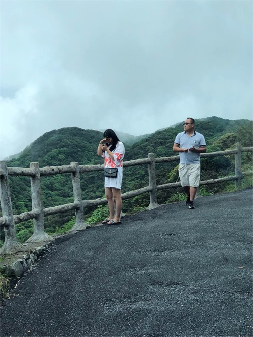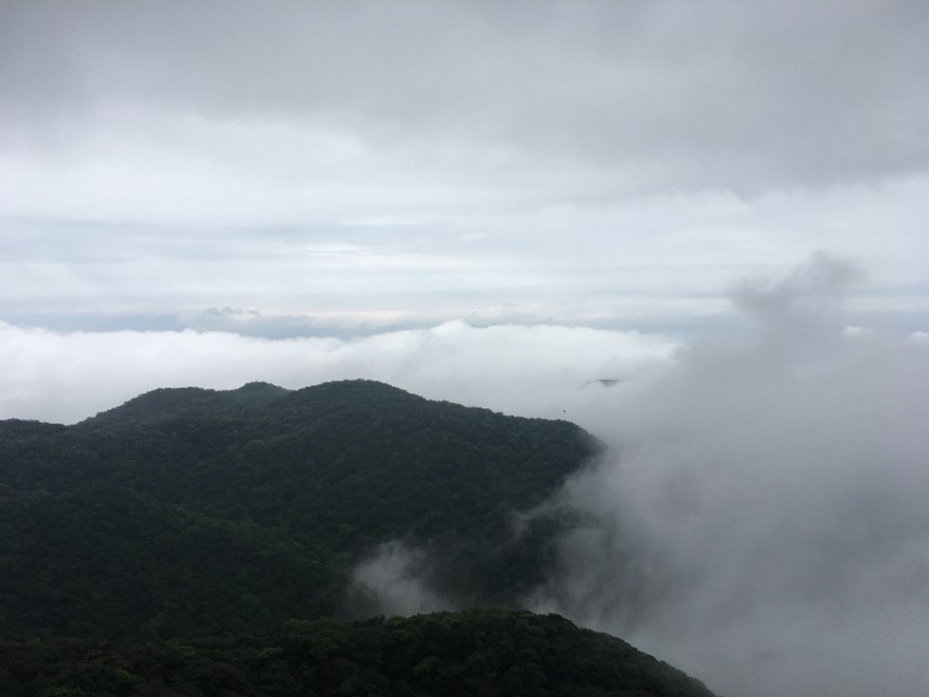 感觉我们这次登山的好运气已经用完,刚开始登山的时候天气晴朗,烈日高照,蓝天白云。可是当我们费了九牛二虎之力差不多到山顶时,却突然下起雨来,顿时到处都是雾蒙蒙的,远处的风景根本看不了。可是当我们下山之后,天又突然放晴了……老天爷不带这么玩人的……