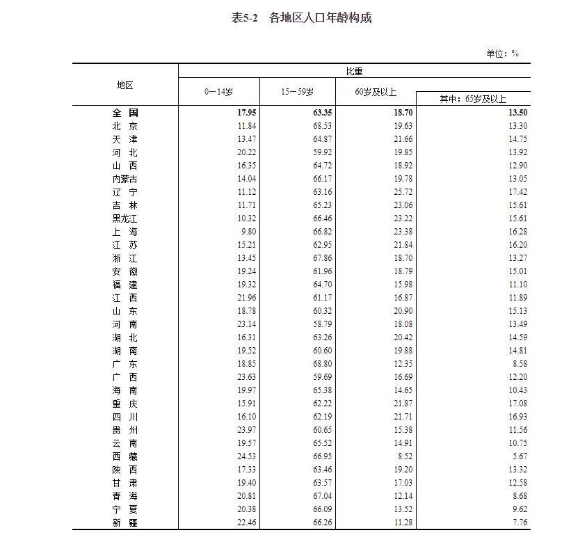 3、在年龄构成方面,0至14岁占比15.91%,15岁至59岁占比62.22%,60岁及以上占比21.87%;