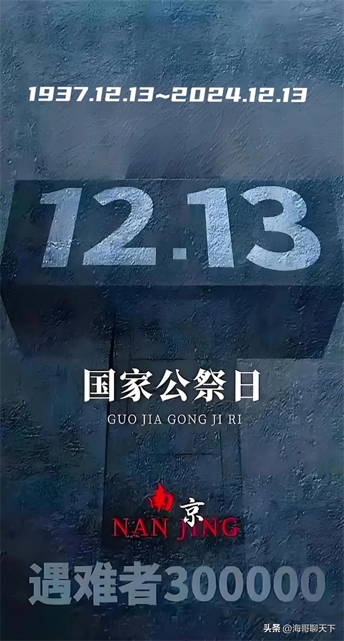 今天12月13日,星期五。是南京大屠杀国家公祭日。1937年12月13日日军占领南京后。对三十多万手无寸铁的南京市民和放下武器的军警实行惨无人道的屠杀,强奸、抢劫和纵火等罪行,持续六个星期之久。据统计,其中许多妇女、儿童和老人成为无辜的牺牲品。南京大屠杀死难者国家公祭日是我国政府2014年设立的纪念日,以国家公祭的方式,每年12月13日在南京大屠杀死难者国家公祭仪式南京主会场下半旗祭奠在南京大屠杀中死亡的30多万同胞。