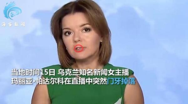 当地时间15日,乌克兰知名新闻女主播玛丽亚·帕达尔科在直播中突然门牙掉落。