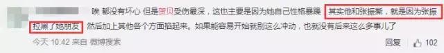 据悉,矛盾爆发的经过和缘由是这样:黄灿灿与贺贝是闺蜜,黄灿灿与张振是男女朋友;贺贝在直播时爆料黄灿灿与张振已经分手,指责了男方,结果引得cp粉一顿喷,最终被气到先兆流产。