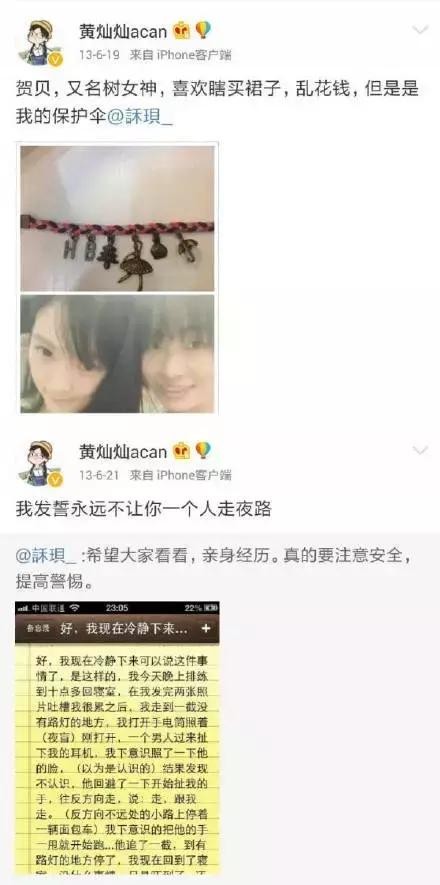 俩人微博互动也很频繁,都是生活中动人的友情小细节,比如贺贝抱着黄灿灿踏水路,比如贺贝帮黄灿灿选课。