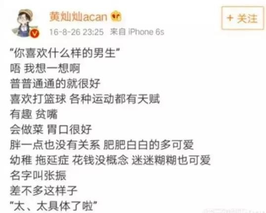 差不多也是在那个时候,黄灿灿在微博晒出了与男友张振的激吻照公布恋情。