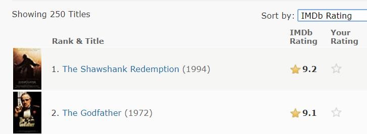 IMDb Top250的分数却是“独立”的,与常规分数的计算方式不同。