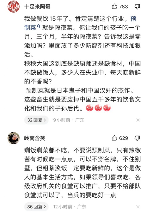 总的来说,河北平山中学高级教师的言论虽然引起了社会的广泛关注,但也提醒了我们需要更全面地看待食品健康问题。关于预制菜的事:弱弱地、颤巍巍地问一句, 国家部委食堂、各省各区公职人员食堂、中央企业食堂, 开始吃预制菜了吗? 有能晾晒晾晒的勇士吗?
