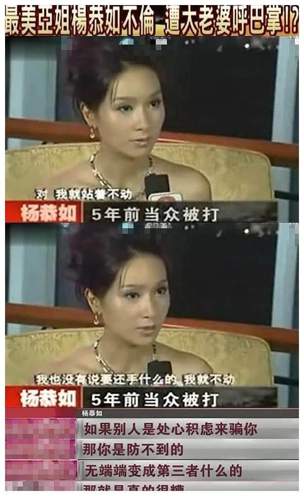 她曾经在媒体面前大骂杨恭如是小三,要求她离开郑伊健。杨恭如对此没有做出任何回应,她只是继续和郑伊健的合作,继续保持她和郑伊健的暧昧。