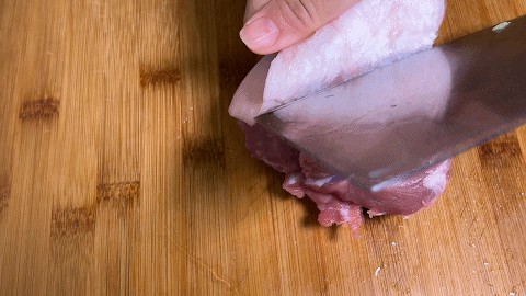 7. 瘦肉部分切成肉丁,切好放入小碗中备用