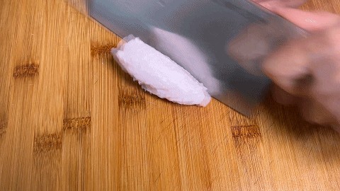 8. 肥肉和猪皮分开,肥油部分切成丁