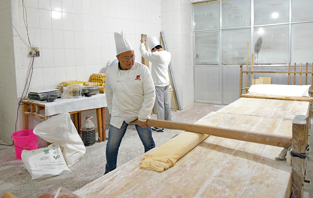 图为舒基霖正在压面