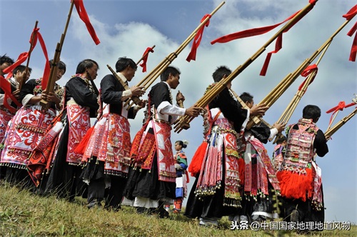 贵州苗族人民在吹芦笙