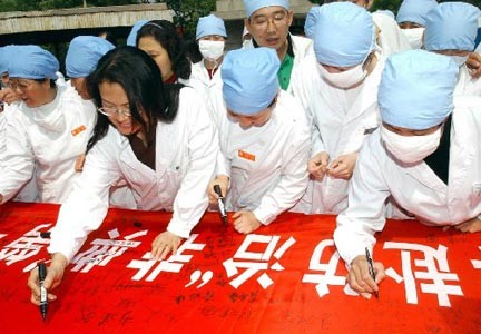 学校教学工作几乎不再进行,整个学校严阵以待。每天新闻上滚动播放着各种关于非典的新闻。广东省呼吸科专家钟南山与一大批敢于牺牲敢于拼搏的一线临床医生共同战斗在最危险的防疫一线!
