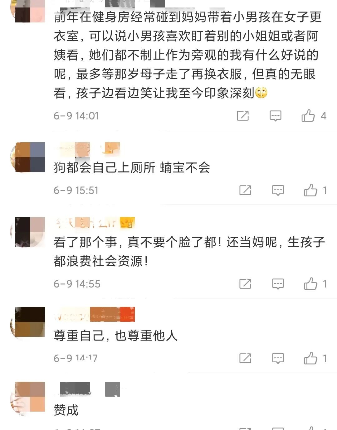 今天,关于#女子带儿子进游泳馆女更衣室# 、#杭州游泳馆规定超过3岁孩子禁止进异性更衣室、#外婆带外孙子在男浴室洗澡#、#女更衣室#、#游泳馆更衣室每天都有女性带儿子进来# 的话题,一天内微博热搜里出现了好几个。带孩子的家长往往认为“孩子还小”,而同处一室的其他人则感到不适尴尬。