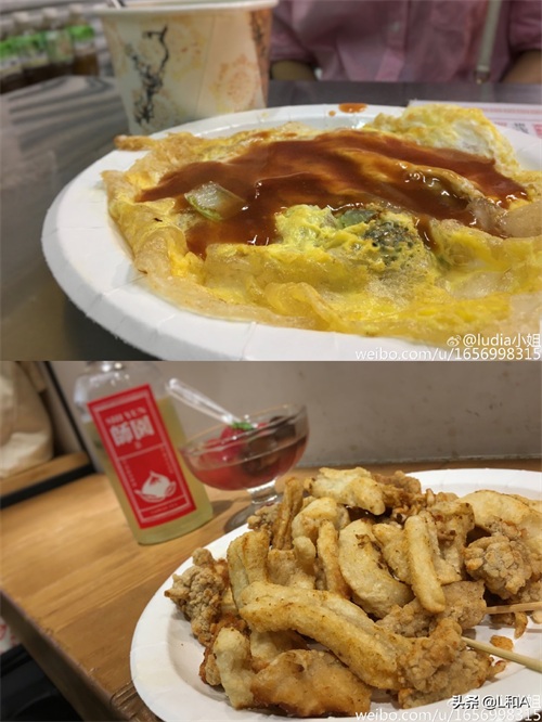 台师大夜市(上)某小店的蚵仔煎,比士林的忠诚号和大头龙差多了;(下)师园的盐酥鸡
