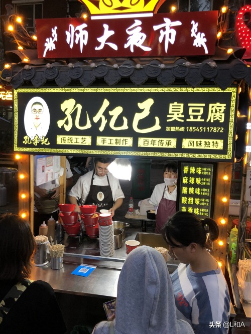 至此,我俩的任务已完成,剩下的时间和肚皮空间就自由活动。离闫守一不远是孔亿已臭豆腐,印象中在某些攻略上有见过这字号,既然就在旁边而且也人头攒动,去瞧瞧。
