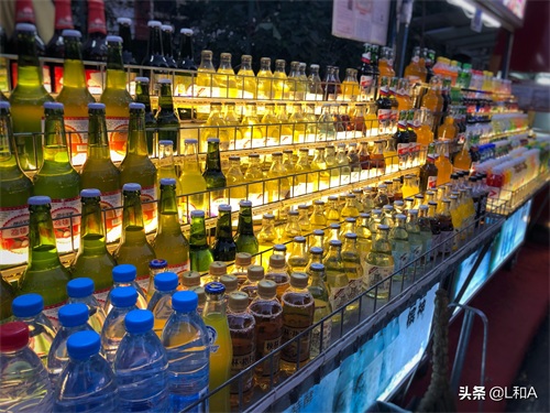 ▲重口小吃的连番轰炸,免不了喉焦唇干,我们两次帮衬五光十色的音乐水吧,试了两款冰城“酿造”的冰爽小香槟汽水。
