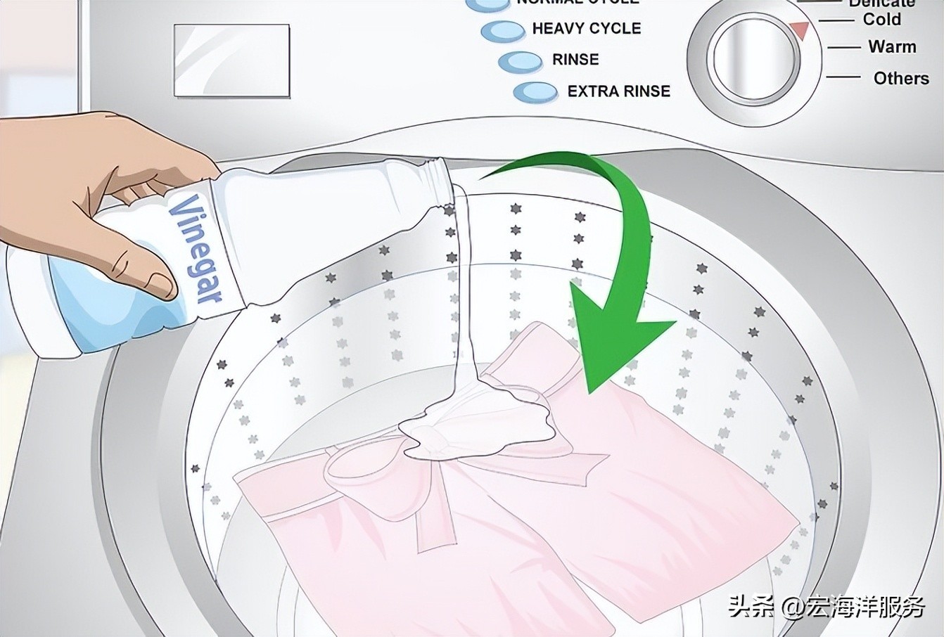 2、以正常循环在冷水中清洗衣服。将褪色的衣服放入洗衣机,加入洗衣粉,然后打开机器。在许多情况下,只需将衣服浸泡在醋中然后清洗,就可以让它们看起来更亮。