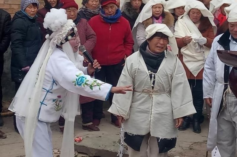 武会霞的拙劣表演惹得围观的人群窃窃私语,有人还笑出了声,让本来应该严肃的葬礼充满了“快活的空气”。